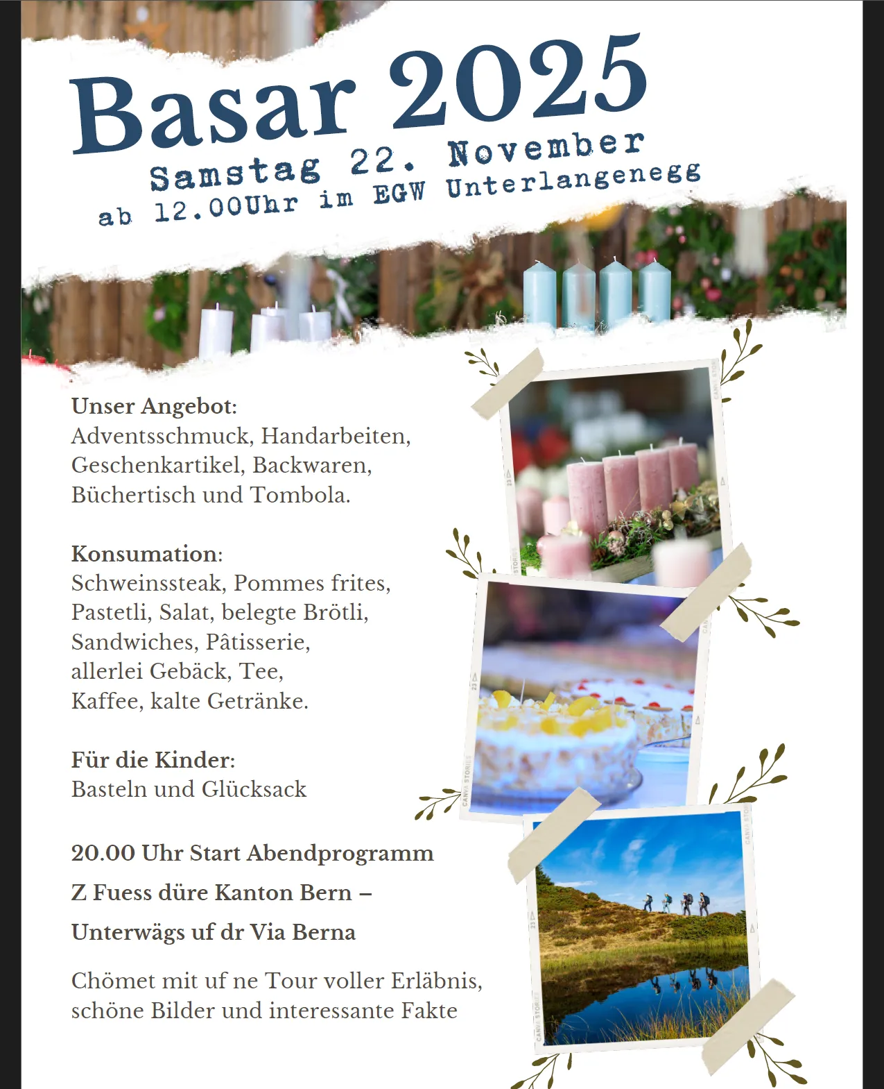 Der Basar findet am Samstag, 22. November 2025 statt.